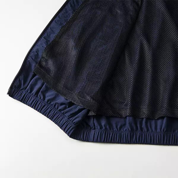 袖と裾にはシャーリングゴムを配し、スタイルが崩れにくく、アクティブな動きにも対応。
