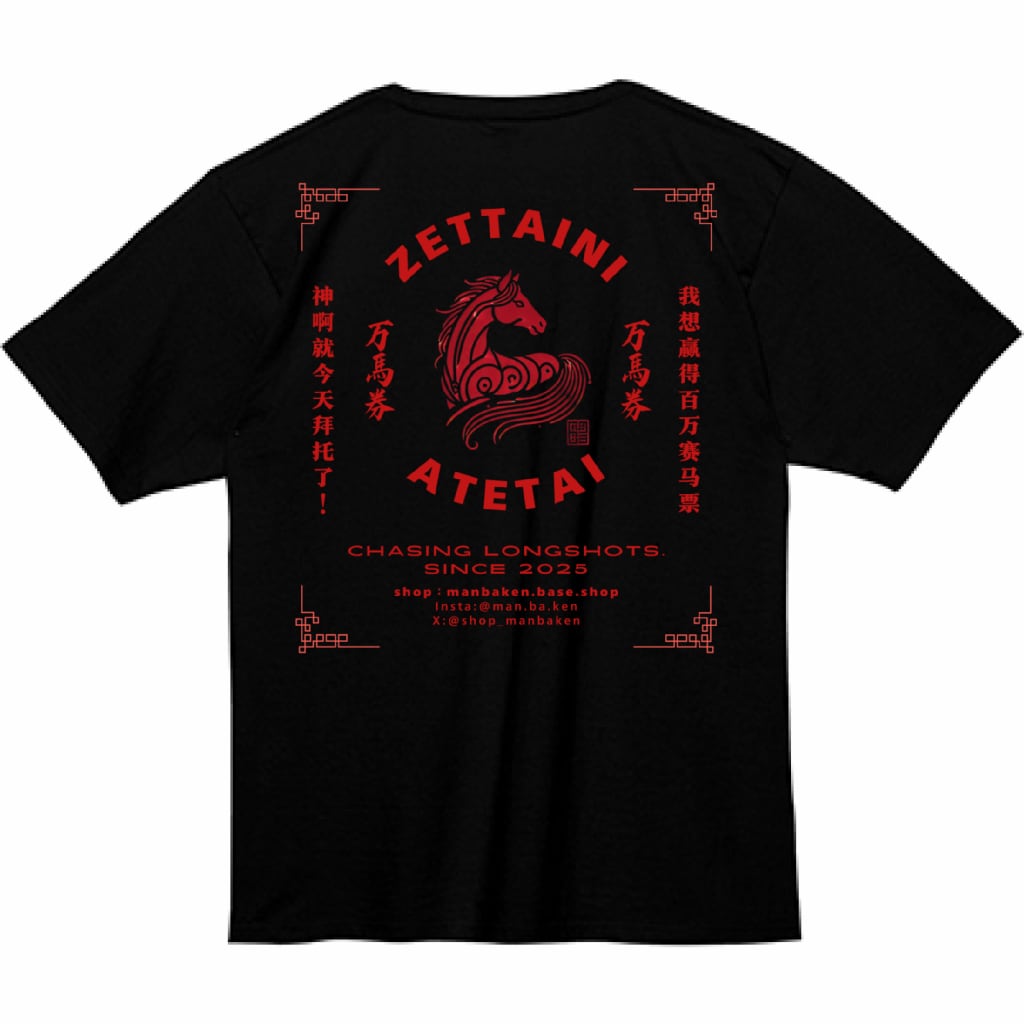 “ZETTAINI 万馬券 ATETAI”_Black / ヘビーウェイトコットン×バックプリントTシャツ