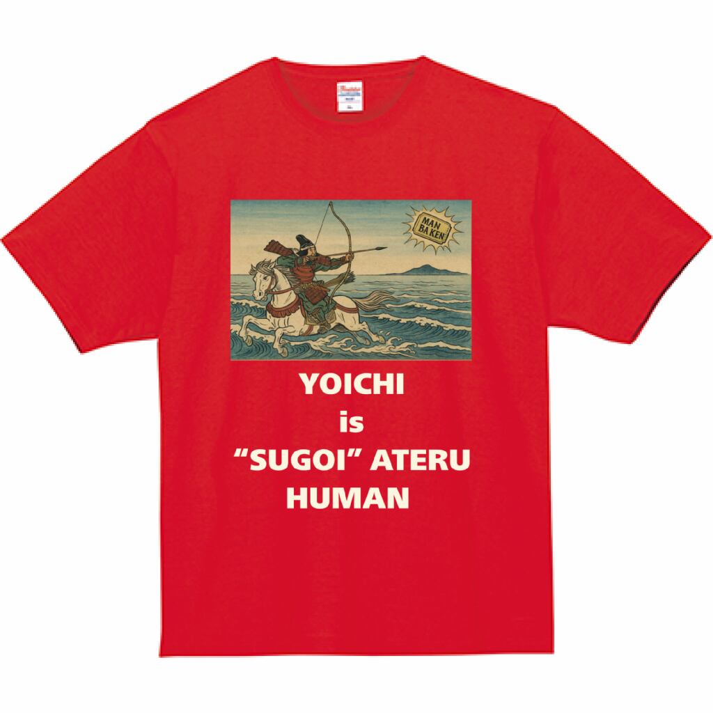 YOICHI is “SUGOI” ATERU HUMAN_Red / ヘビーウェイトコットン×フロントプリントTシャツ
