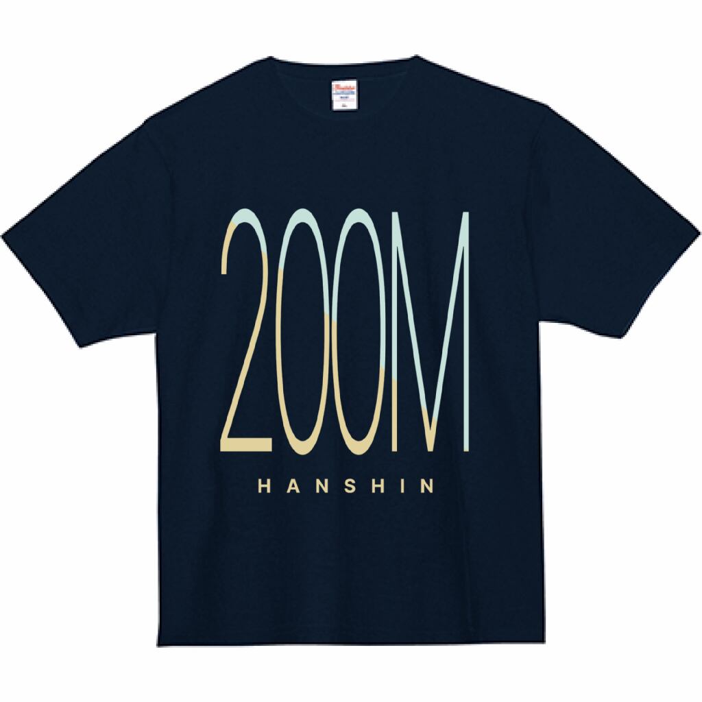 200M -HANSHIN-_Navy / ヘビーウェイトコットン×フロントプリントタイポグラフィTシャツ
