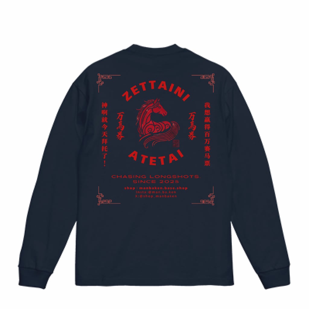 #manbaken #ZETTAINIATETAI #競馬ロンT #絶対に当てたい #縁起Tシャツ #競馬ファッション #中華ストリート #ラギッドコットン #秋冬ロンT #バックプリントT #観戦コーデ #manbaken勝負服 #趣味全振り #分かる人には分かる #通が好きなやつ #競馬Tシャツ