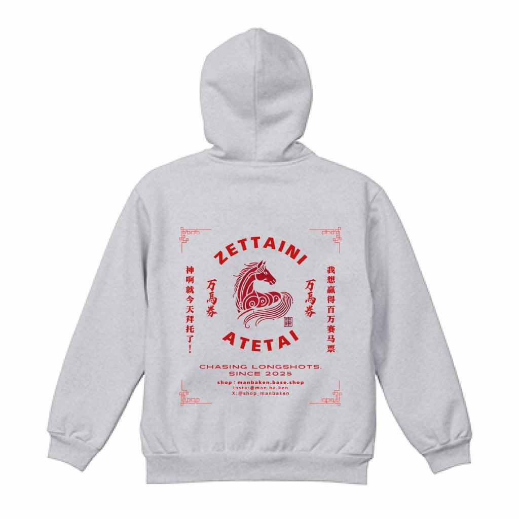 #manbaken #競馬パーカー #願掛けパーカー #ZETTAINIATETAI #万馬券 #競馬ファッション #競馬場コーデ #勝負服 #競馬好き #縁起デザイン #中華風デザイン #冬限定アイテム #アウターパーカー #こだわりすぎないこだわり #大人の趣味 #観戦スタイル #競馬民