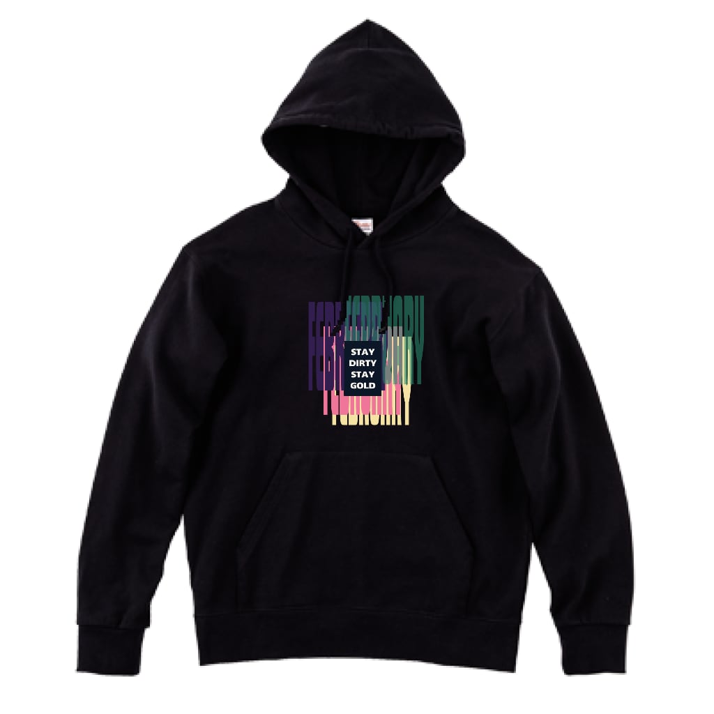 【期間限定】FEBRUARY - STAY DIRTY STAY GOLD -_Black / 9.7oz Wフードプルパーカー